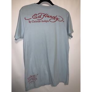 Ed Hardy Mermaid Design Blue T-Shirt By Christian Audigier Medium Vintage
