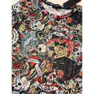 Ed Hardy NWT sheer tattoo crop black & red short sleeve poly, rayon top. Size L.