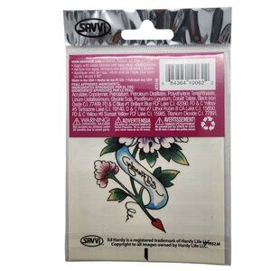 Ed Hardy Nail Tattoo Stickers Set of 3 with 10 sets each and a matching tattoo in each package. Apply with water. They include Love Kills Slowly with heart and skull; skull butterfly; and diamond and flower. Made in USA by Savvi of Tucson, AZ. New in unopened package.