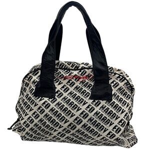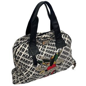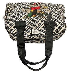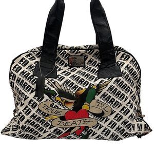 RARE Don Ed Hardy Designs Oversized Satchel Bowler Bag All Over Logo Print Overnighter Weekender Vintage 2000s