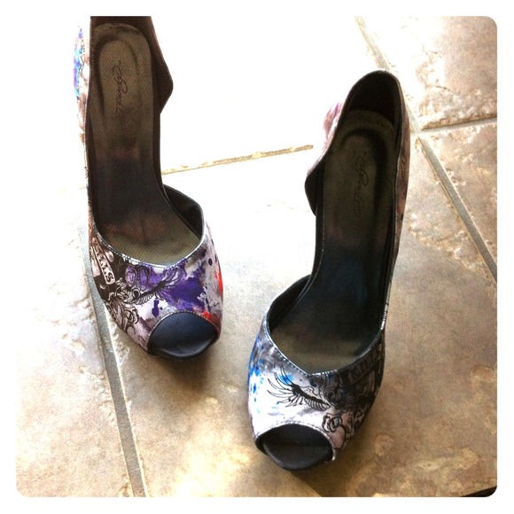 Ed Hardy Heels, worn only a few times. Platform with high heels, signature Ed Hardy design, even on bottoms!