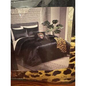 Ed Hardy Queen 5 Piece Satin Comforter Set & 6 Piece Black Satin Sheet Set