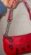 Bold red shoulder bag with edgy chain details. Features signature Ed Hardy design elements.