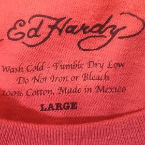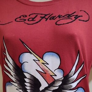 Ed Hardy Red with Eagle Graphics Rhinestone Logo Name Size Large 77 Tattoo Tee