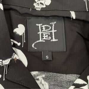 Ed Hardy Short Sleeve Button Down Shirt Skull Dagger Tattoo Print Black MEN'S S