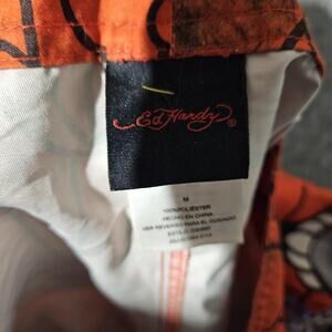 Ed Hardy Shorts Mens Medium Orange Skull Death Before Dishonor Swim Trunks