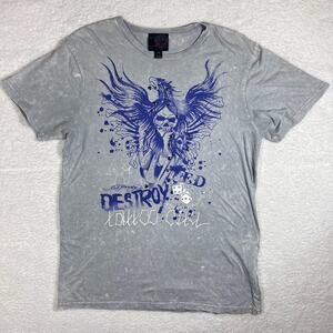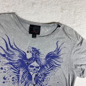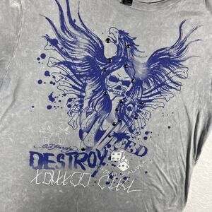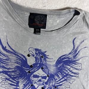 Ed Hardy Skull Embellished Dead or Alive Y2K Tattoo Graphic Gray Blue Men's XL