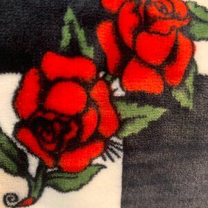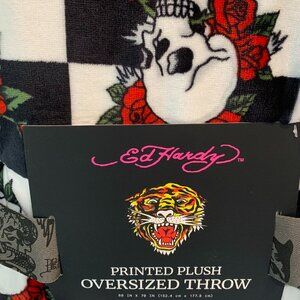 Beautiful black and white checkered with skulls and bright red roses throughout on this oversized super plush throw from Ed Hardy. Never used, still in original wrapping. Just adorable and oh so soft oversized plush throw is perfect year-round comfort and coziness. Easy care, machine wash cold. For adults, for children, or even for your fur baby! Measures a generous 60" x 70". Never used, with tags attached - incredibly soft and plush. I have several plush throws in my closet so find your favorite!
