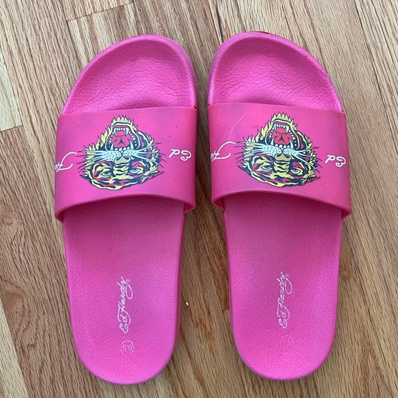 Pink Ed Hardy slides