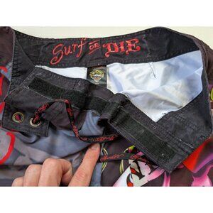 Ed Hardy Swimsuit Mens 32 Trunks Tattoo Art Skull Heart Love Kills NO LINER Y2K