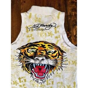 Ed Hardy Sport by Christian Audigier Tiger Shirt is a vintage sleeveless polo shirt with a collared neckline.