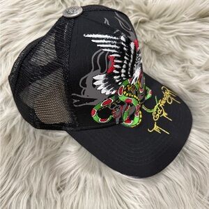 Ed Hardy Trucker Hat Embroidered Tattoo Eagle Snake Black Mesh Snapback Cap