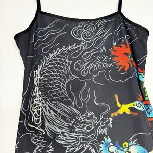 Ed Hardy Vintage Mesh Mini Dress in Black Tattoo Dragon Print Size Large