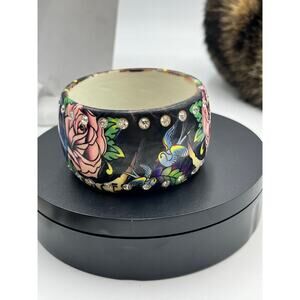 Ed Hardy Vintage Pink Roses Love Peace Tattoo Rhinestone Lucite Bangle Bracelet