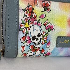Ed Hardy Wallet Womens Multicolor Skull Floral Zip Around Wristlet Tattoo Art Style