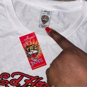 Ed Hardy White and Red Short Sleeve Tee with Tiger Graphic