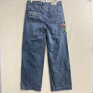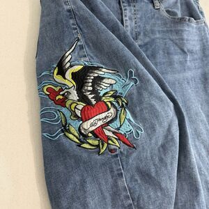 Ed Hardy Wide Leg Jeans Eagle Heart Dagger Women Size 34 Vintage Wash
