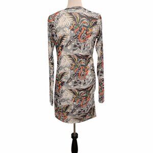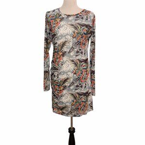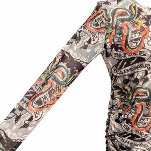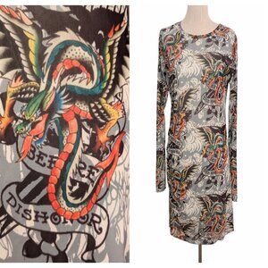 Ed Hardy Womens Size XL Dragon Wings Tattoo Mesh Ruched Side L/S Bodycon Dress