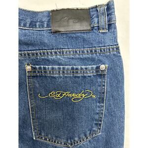 Ed Hardy Vintage Women's Straight Leg Jeans in Size 18 which is Eqivilent to Women's Waist Size 34-36 and Hips Size 46. Excellent Condition. 30" Inseam. Can run a little on the small side so waist probable closer to a 34".