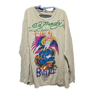 Ed Hardy Y2K Battle Design Long Sleeves Cream Color Size 3XL