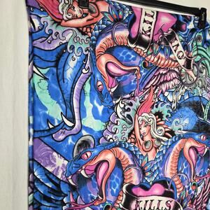 Fully printed with skull and crossbones, "Love Kills Slowly", mermaids, snakes, waves, etc. Beautiful colors!