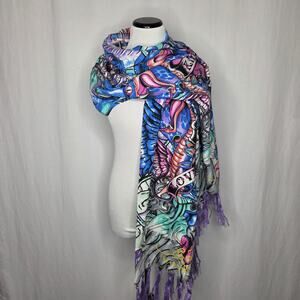 Ed Hardy Y2K Love Kills Slowly Snakes Mermaid Purple Blue Fringe Scarf Wrap NEW