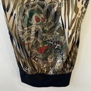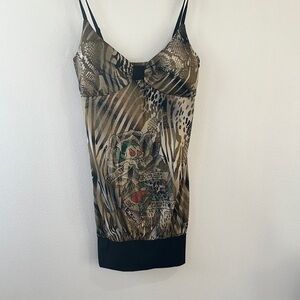 Ed Hardy Y2K vintage Brown and Black Animal Print Embellished Camisole size M