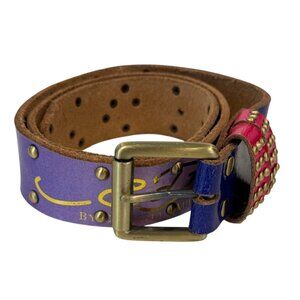 Ed Hardy by Christian Audigier Handmade Leather Floral Belt Purple Size M NWT