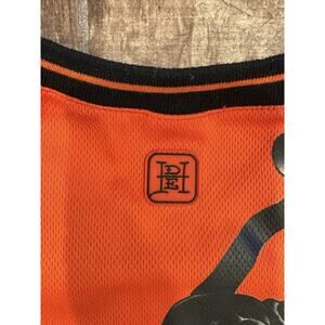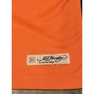 The Ed Hardy by Christian Audigier Kids Sleeveless Top in orange & black is Great for young boys who want to make a statement with their clothing. Made from 100% polyester, this tank top features a high V neckline and is a pullover. It’s a kids size 6/7. Measurements are in last two photos.