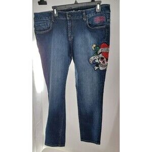 Ed Hardy by Christian Audigier "Love Kills Slowly" embroidered skull jeans Y2K