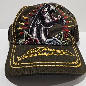 Ed Hardy by Christian Audigier Panther Trucker Hat Y2K 2000s Snapback OS