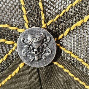 ๐ฅ Authentic Ed Hardy by Christian Audigier trucker hat with classic mid-2000s style โ bold panther embroidery, contrast stitching, and vintage donedhardy.com taping inside (used 2006โ2009).
