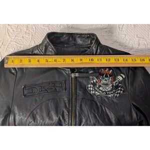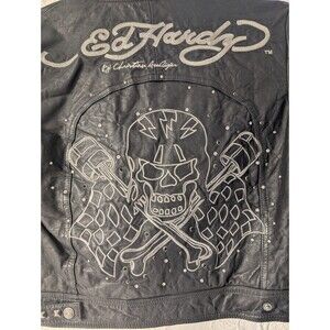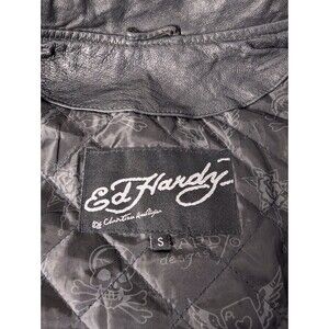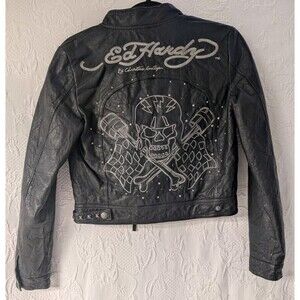 Ed Hardy by Christian Audigier Women's S Black Leather Jacket World Tour Skull