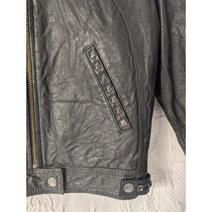 Ed Hardy by Christian Audigier Women's Small Black Leather Jacket World Tour Skull, excellent condition missing one side button on attachment