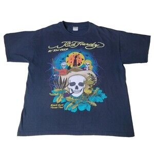 Ed Hardy by Jon Reep T-Shirt Black Gold Texas Tea Skull Cowboy Graphic Tee SZ L