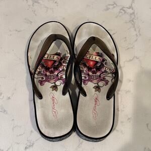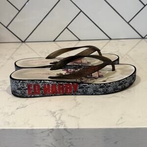 Ed Hardy flip-flops signature tattoo-graphics black white red size 10 Y2K baddie