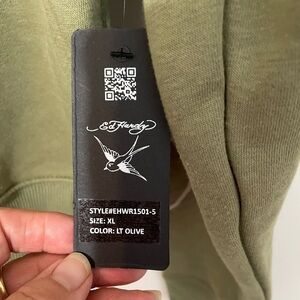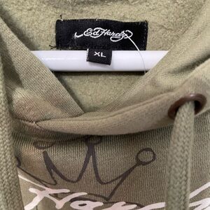 Ed Hardy lt olive long sleeve pullover hoodie double sided graphics XL New