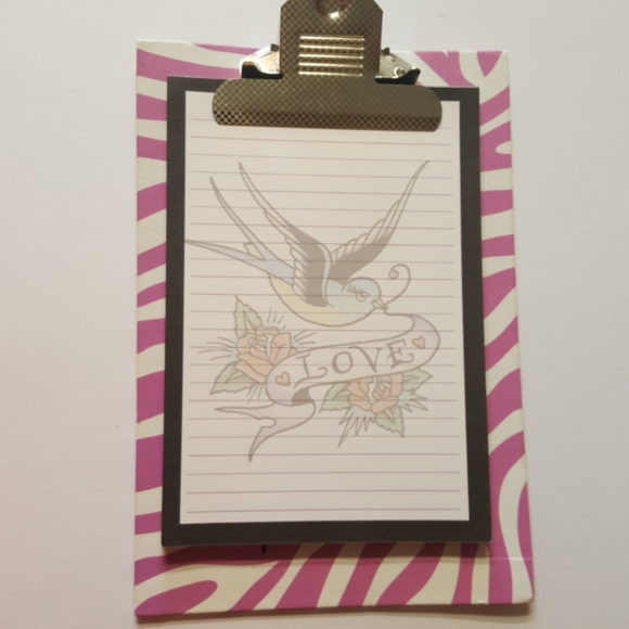 Ed Hardy note pad with clipboard for your notes, purchase list, errans. Used, has plenty of pages left.