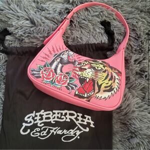 Ed Hardy x Siberia Hills Y2k Pink Tattoo Tiger Panther Print Hobo Bag Purse