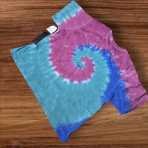 Ed Hardy Blue And Pink Tie Dye Logo Cropped Tee Shirt NWT