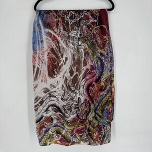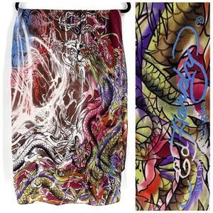 Ed Hardy Christian Audigier Silk Large Scarf Dragon Print 39 x 57.5