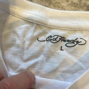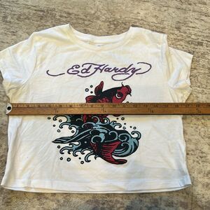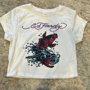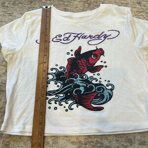 Ed Hardy White Red koi fish Graphic Crop size Tee large