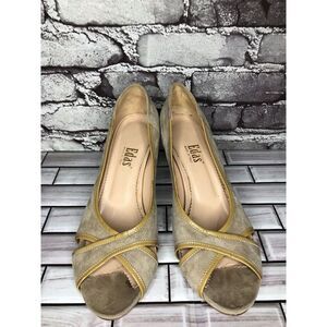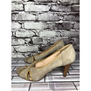 Selling Edas Beige Suede Leather Patent Lining Peep Toe Dress Heels Women’s Sz 41EU/10US