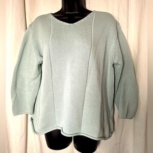 Eddie Bauer 100% Cotton Knit V-Neck Pullover Sweater Mint Green Womens Sz XL