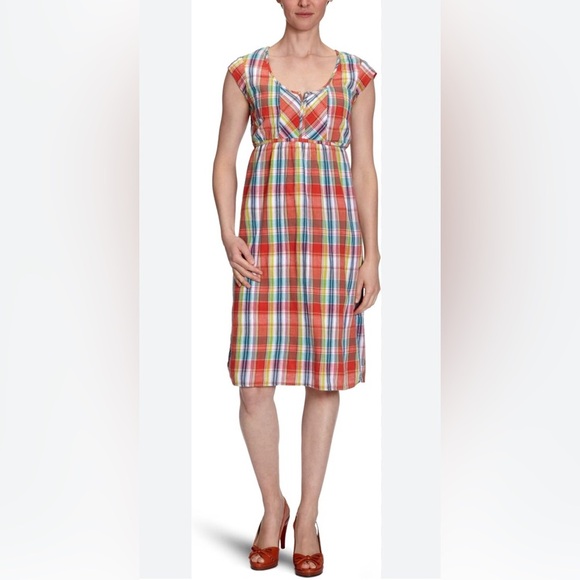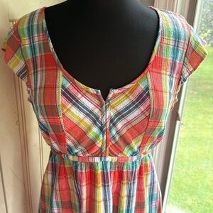 Eddie Bauer 100% Cotton Plaid Tie Waist Sleeveless Dress