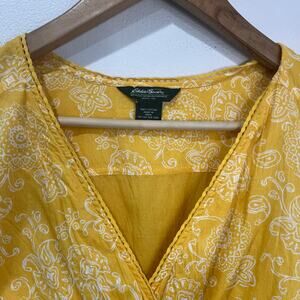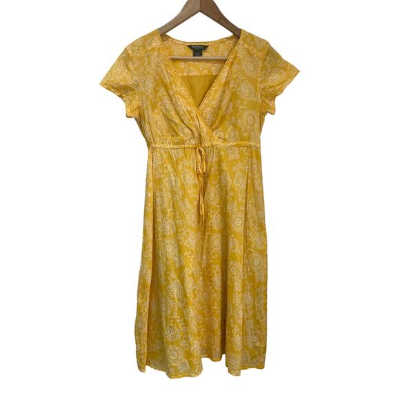 Eddie Bauer 100% Cotton Yellow Paisley Fit & Flare Dress Boho Sz S