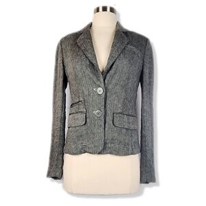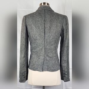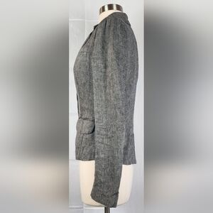 Eddie Bauer 100% Linen Lagenlook Taupe Herringbone Fitted Blazer Jacket 2