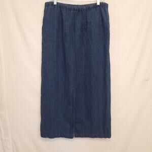 Eddie Bauer 100% Linen Navy Maxi Skirt Size 12 Pockets Modest Beachy Coastal