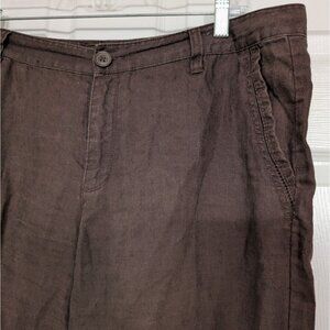 Eddie Bauer Womens 100% Linen Brown Casual Straight Leg Pants Size 14