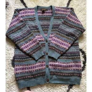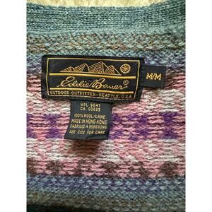Eddie Bauer 100% Wool Cardigan Sweater Women s M Relaxed Nordic Fairisle classic
